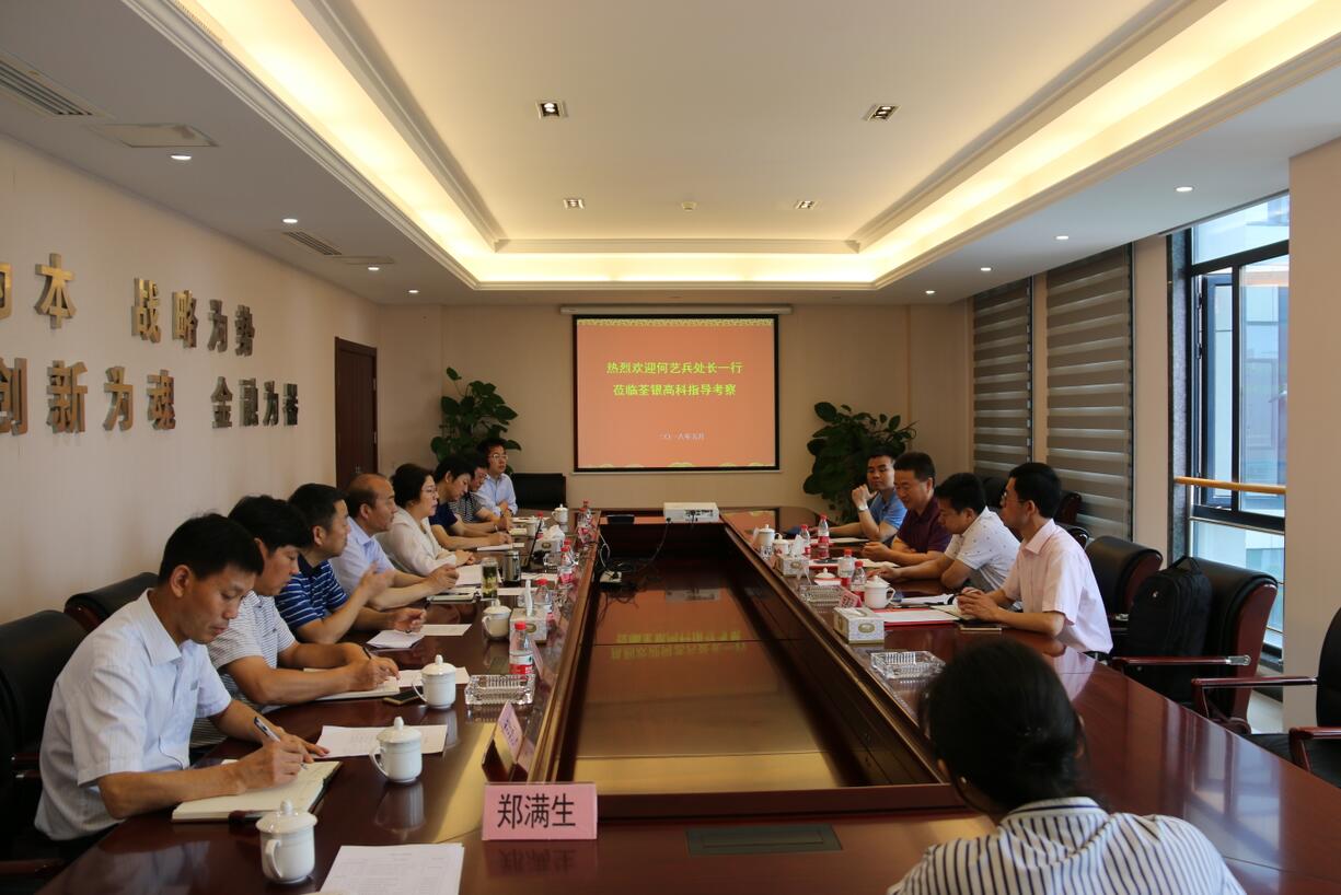 ??? 2018年5月29日,農(nóng)業(yè)農(nóng)村部科教司高新技術處處長何藝兵帶隊,全國農(nóng)技推廣服務中心處長邱軍、中國農(nóng)業(yè)科學院科技局處長林克劍、科教司項目專員吳圣勇博士蒞臨荃銀高科調研指導。安徽省種子管理總站副站長汪社寬、主任科員朱國邦,安徽荃銀高科董事長張琴、副董事長陳金節(jié)、副總經(jīng)理張從合、朱全貴等參加調研座談會。