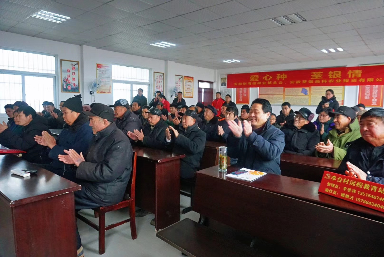 ??? 臘月的古城壽縣,寒風(fēng)凜冽,壽縣迎河鎮(zhèn)李臺村村委會的會議室卻溫暖如春。1月12日,安徽荃銀高科農(nóng)投有限公司攜手安徽張海銀種業(yè)基金會及壽縣金豐公社有限公司走進(jìn)壽縣迎河鎮(zhèn)開展“穗悅”精準(zhǔn)扶貧項(xiàng)目活動(dòng)。為當(dāng)?shù)?0戶建檔立卡的貧困戶每戶送去優(yōu)質(zhì)水稻種子和化肥。壽縣扶貧辦副主任徐中貴、縣殘聯(lián)副理事長陳慶華,壽縣迎河鎮(zhèn)黨委書記李景練、副鎮(zhèn)長戴紹江,基金會秘書長張彤、安徽荃銀高科農(nóng)投有限公司總經(jīng)理助理鄭運(yùn)衛(wèi)、金豐公社總經(jīng)理滕玉磊等參加了活動(dòng)。