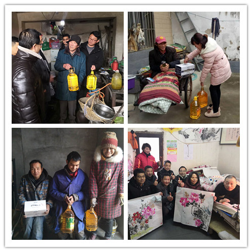 ??? 農(nóng)資捐贈(zèng)活動(dòng)結(jié)束后,荃銀農(nóng)投、基金會、壽縣金豐公社還為壽縣迎河鎮(zhèn)6戶因病因殘等病困家庭送去生活物品和慰問金。因車禍致殘癱瘓?jiān)诖?4年的韓兵用繩子綁住手,趴在床上的現(xiàn)場作畫,看到他身殘志堅(jiān),樂觀向上的精神,在場的每位人士深受感動(dòng)和由衷欽佩。