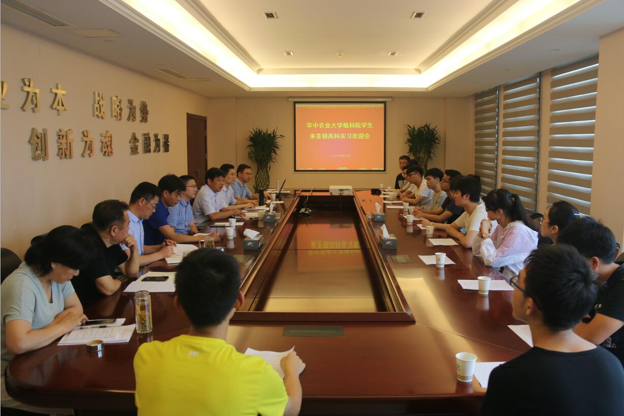 ??? 2019年7月8日,公司迎來了華中農業大學植物科學技術學院14名實習生,并舉行了歡迎會。公司副總經理、首席技術官張從合研究員,工會主席、辦公室主任鄭滿生,總經理助理王自生等領導和實習生用人部門負責人參加。